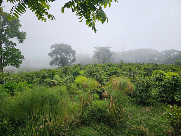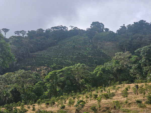 This is our first time buying from Mil Cumbres, after tasting their coffee for a few years, we got in touch with Mario from Mil Cumbres and visited him last time we were in Panama. The drive up to his farm is quite treacherous, with frequent flooding, steep cliffs, and a worn out track guiding the way. But once you're there, it's a stunning view almost from coast to coast of Chiriqui. The farm sits on a ridge from Volcan Baru where a very unique microclimate exists - with a mix of sun and heavy clouds all within a few minutes of each other, along with persistent winds.