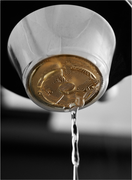By having it sit between the filter and the cup, we greatly increase the contact points, exactly where we want the majority of the coffee to flow through the filter, increasing the flow rate in a very uniform manner and improving extraction, avoiding channeling.