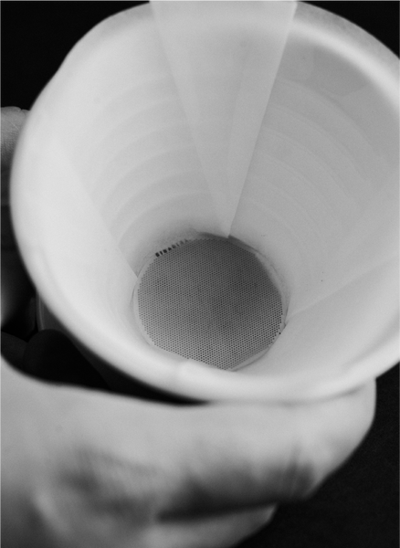 Matte : “When I first started brewing with a Stagg Dripper, I could never get the fine grind and high extraction results that others were talking about—they were always bitter—and I couldn’t understand why. I asked around and someone told me about an article by Johnathon Gagne that mentioned putting a mesh screen under the filter paper in the Stagg Dripper. I decided to give it a try and was amazed at the difference it made! I eventually started testing different diameters and pore sizes of the mesh screen and realized that the magic of this technique wasn’t in putting the filter paper on the dripper, but in increasing the points of contact between the filter paper and the mesh bottom, and increasing the flow rate that way.